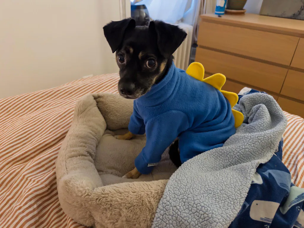 These soft turtleneck vests, shirts and bodysuits are made from super soft and plush anti pill fleece. The soft neck is cozy on your pups neck. It works as a great layer as the weather cools down or an extra house layer. Add a coordinating fabric for a pop of color for the spikes. The leg openings are finished with a soft elastic that will not chafe your pups tender skin. Lots of colors to choose from. I have added them in the drop down. As always, you can request these made from the other plush fleece found on my fabric website www.littlemiloscloset.com . Pair them with an Igzy bodysuit ( sleeveless bodysuit) underneath for extra leg coverage.